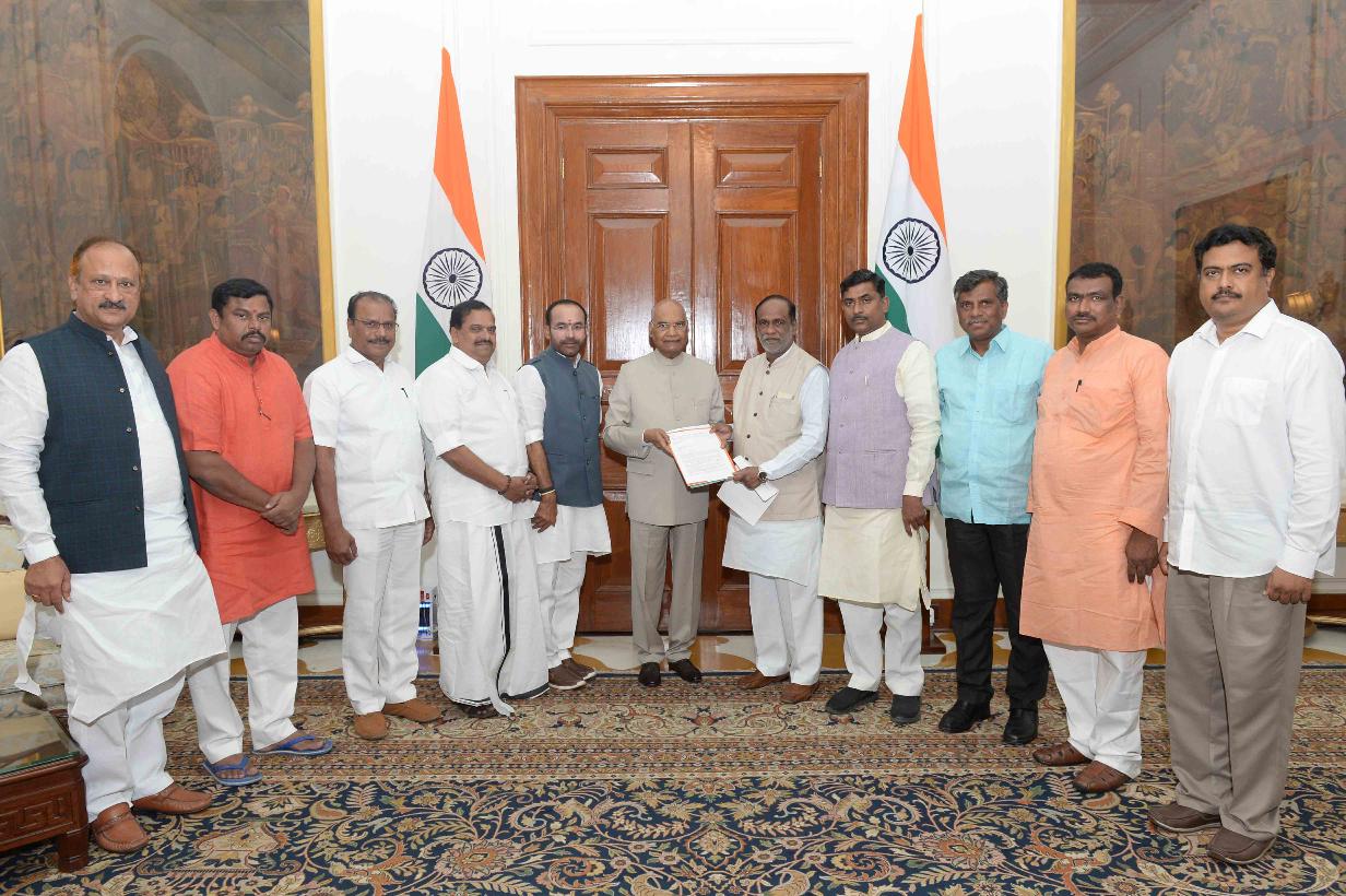 The Minister of State for Home Affairs, Shri G. Kishan Reddy with others meeting with the President of India, Shri Ram Nath Kovind, at Rashtrapati Bhavan on July 01, 2019.