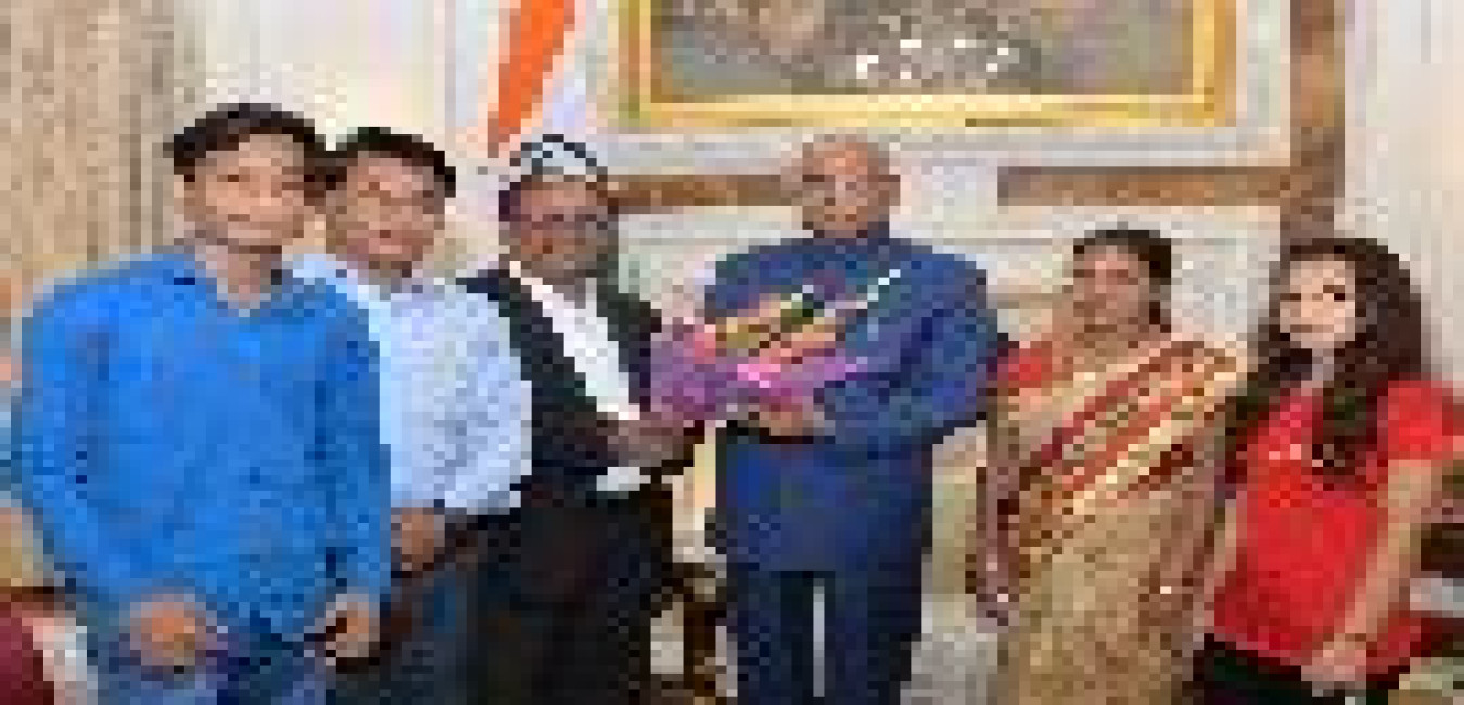 Shri Govind Singh, Advocate along with his family meeting with the President of India, Shri Ram Nath Kovind, at Rashtrapati Bhavan on July 04, 2019.