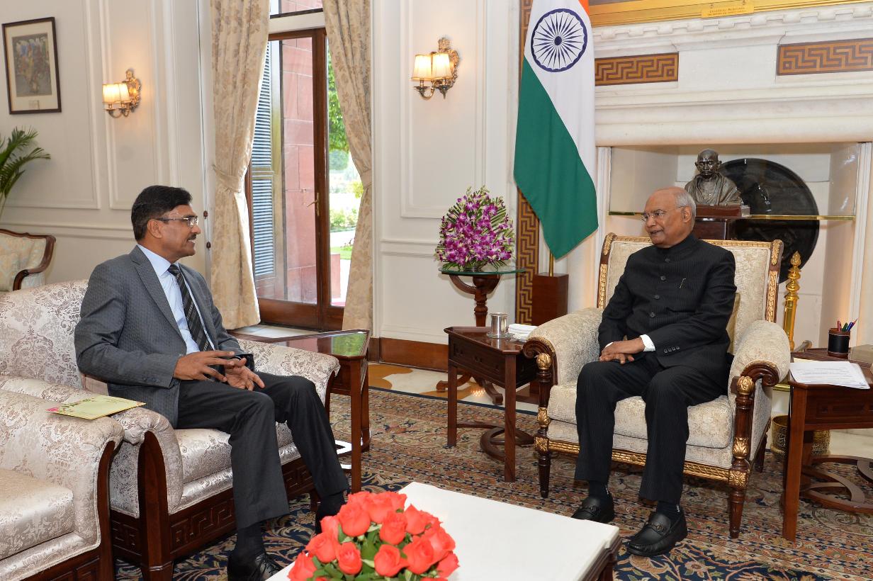 Shri Harbhajan Singh, Ex. District Magistrate, Kanpur meeting with the President of India, Shri Ram Nath Kovind, at Rashtrapati Bhavan on March 11, 2020.