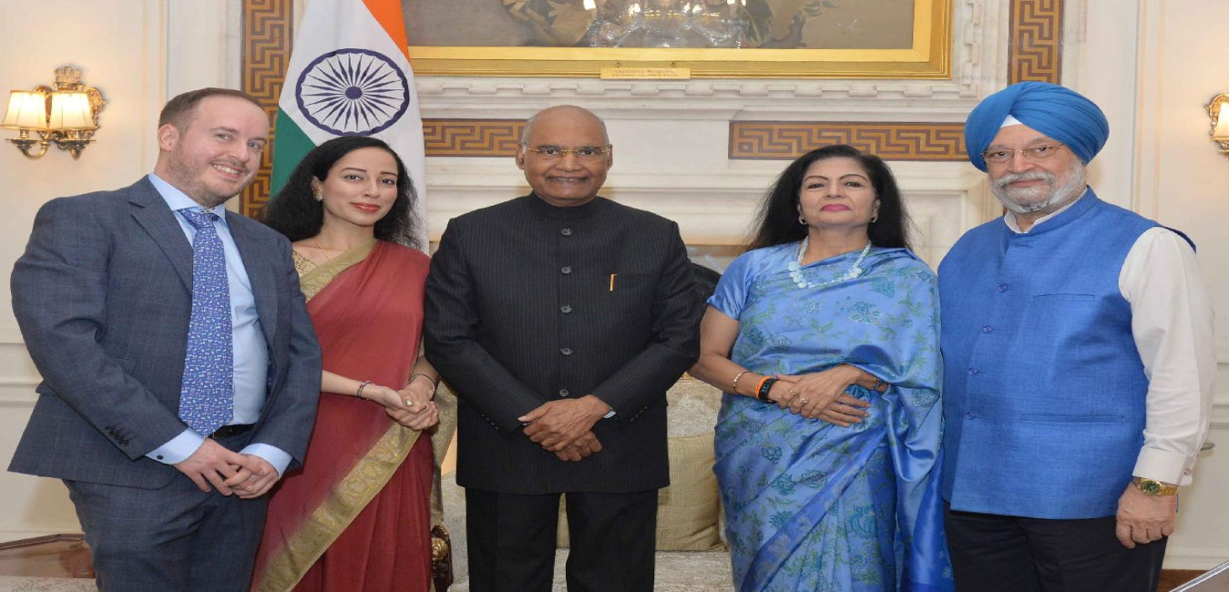 The Minister of State (Independent Charge) for Housing & Urban Affairs and Civil Aviation, Shri Hardeep Singh Puri along with his family meeting with the President of India, Shri Ram Nath Kovind, at Rashtrapati Bhavan on November 25, 2019.