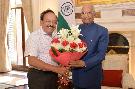 The Minister of Health & Family Welfare, Science & Technology and Earth Sciences, Dr. Harsh Vardhan meeting with the President of India, Shri Ram Nath Kovind, at Rashtrapati Bhavan on June 10, 2019.