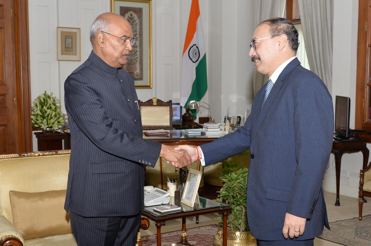 The Ambassador of India to the United States of America, Shri Harsh Vardhan Shringla meeting with the President of India, Shri Ram Nath Kovind, at Rashtrapati Bhavan on February 19, 2019.