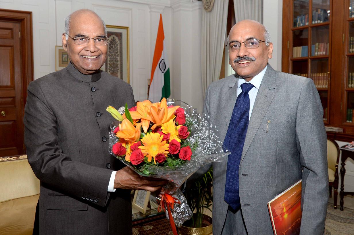 The Chief Justice, High Court of Madhya Pradesh, Shri Justice Hemant Gupta meeting with the President of India, Shri Ram Nath Kovind, at Rashtrapati Bhavan on August 26, 2017.