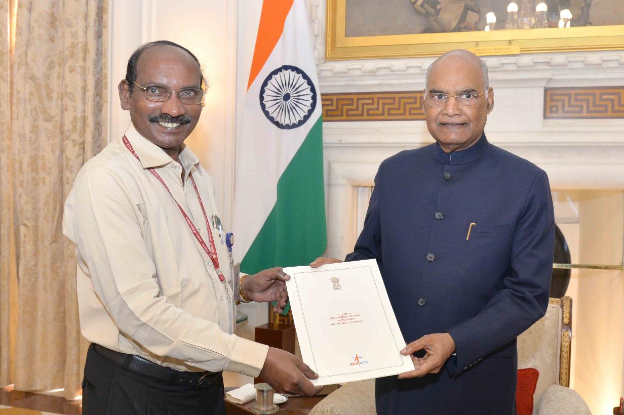 The Secretary, Department of Space and Chairman of ISRO & Space Commission, Dr. K. Sivan meeting with the President of India, Shri Ram Nath Kovind, at Rashtrapati Bhavan on September 25, 2019.