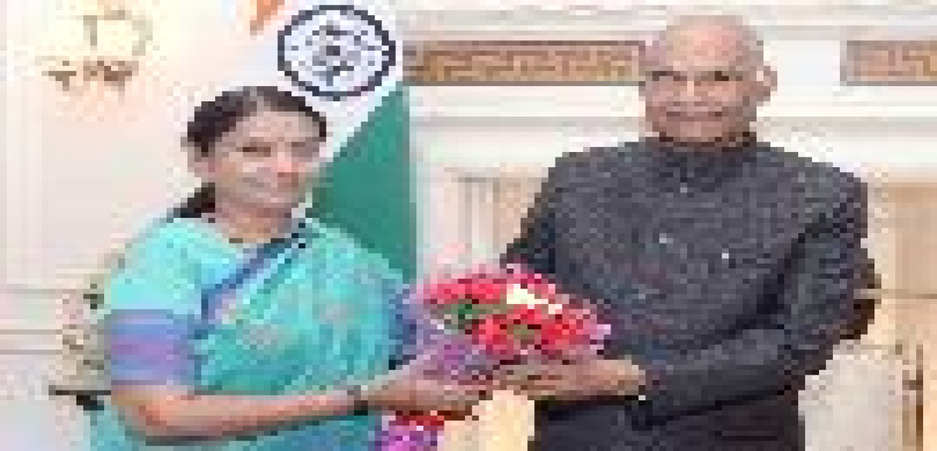 The Ex. Union Minister of State for Agriculture & Farmers Welfare, Smt. Krishna Raj meeting with the President of India, Shri Ram Nath Kovind, at Rashtrapati Bhavan on June 21, 2019.