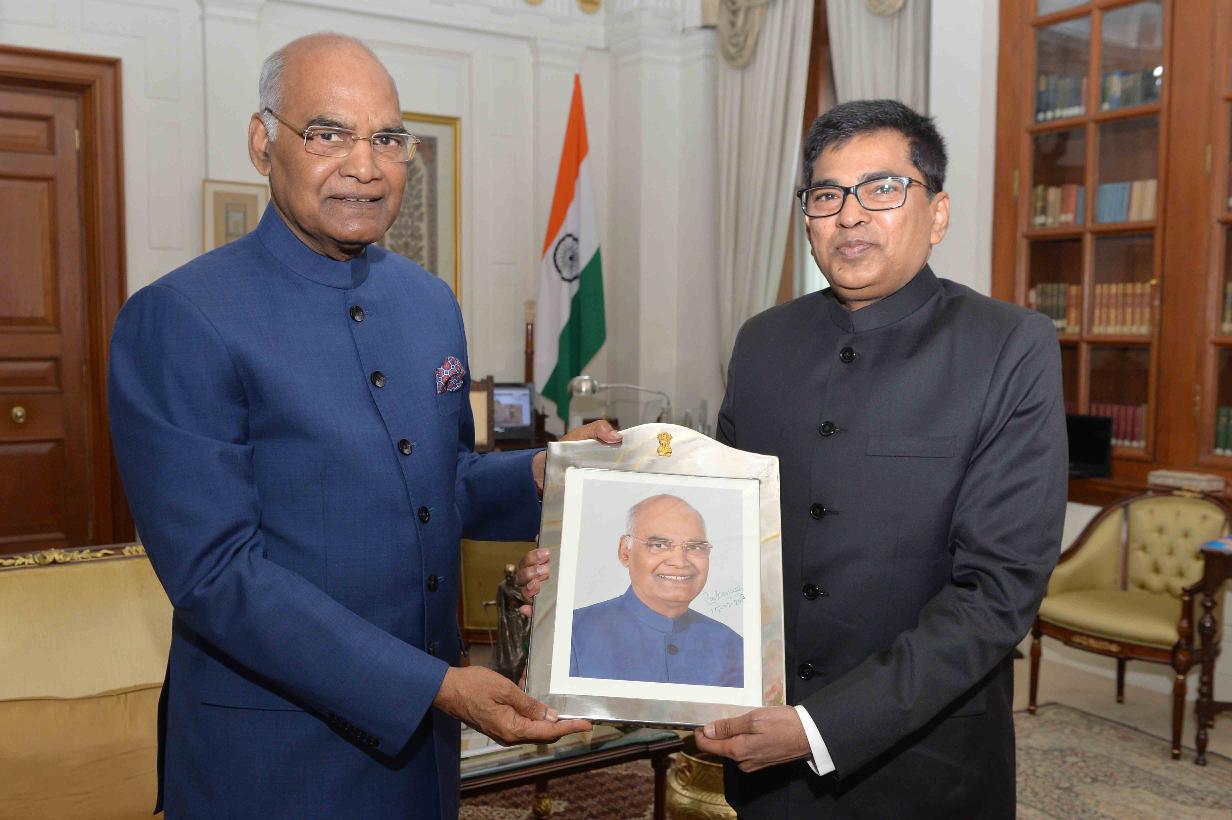 The Ambassador-designate of India to Peru, Shri M. Subbarayudu meeting with the President of India, Shri Ram Nath Kovind, at Rashtrapati Bhavan on February 15, 2018.