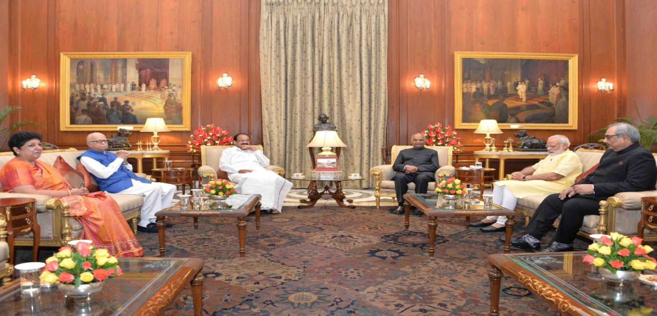 The Vice President of India, Shri M. Venkaiah Naidu calling on the President of India, Shri Ram Nath Kovind, at Rashtrapati Bhavan on August 11, 2017.