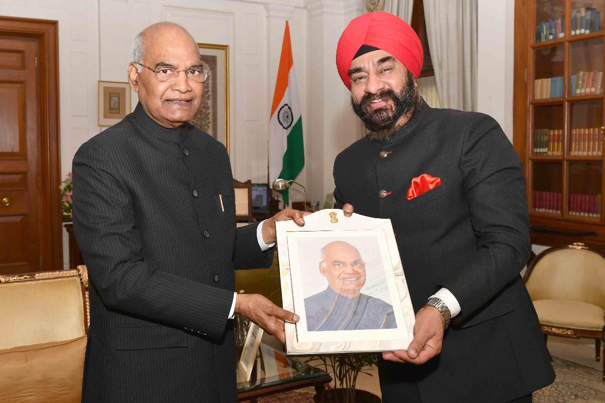 Shri M.P. Singh, Member with others from Haryana Sikh Gurudwara Management Committee, Kaithal meeting with the President of India, Shri Ram Nath Kovind, on the occasion of Guru Nanak's Birthday, at Rashtrapati Bhavan on November 04, 2017.