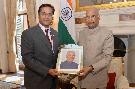 The Ambassador-designate of India to Maxico, Shri Manpreet Vohra meeting with the President of India, Shri Ram Nath Kovind, at Rashtrapati Bhavan on June 13, 2019.