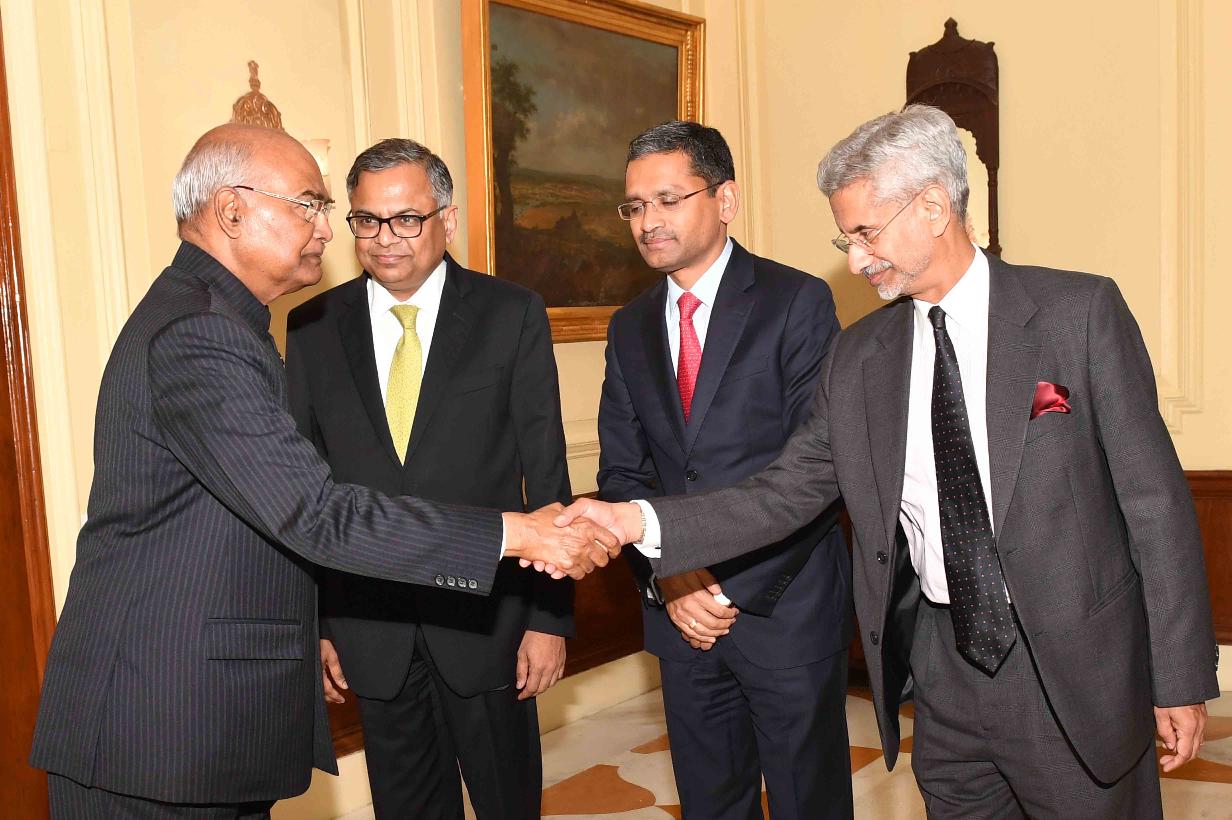 Shri N. Chandrasekaran, Chairman, Tata Sons with others meeting with the President of India, Shri Ram Nath Kovind, at Rashtrapati Bhavan on February 14, 2019.