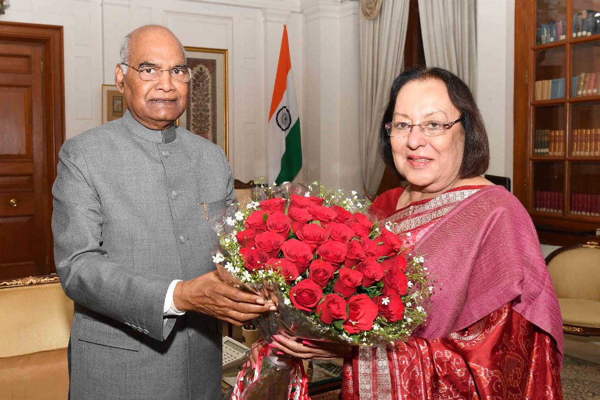 The Governor of Manipur, Dr. Najma Heptulla calling on the President of India, Shri Ram Nath Kovind, at Rashtrapati Bhavan on August 02, 2018.