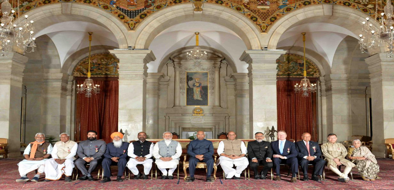 The President of India, Shri Ram Nath Kovind with the recipients of Padma Awards, at a Civil Investiture Ceremony, at Rashtrapati Bhavan on March 11, 2019.