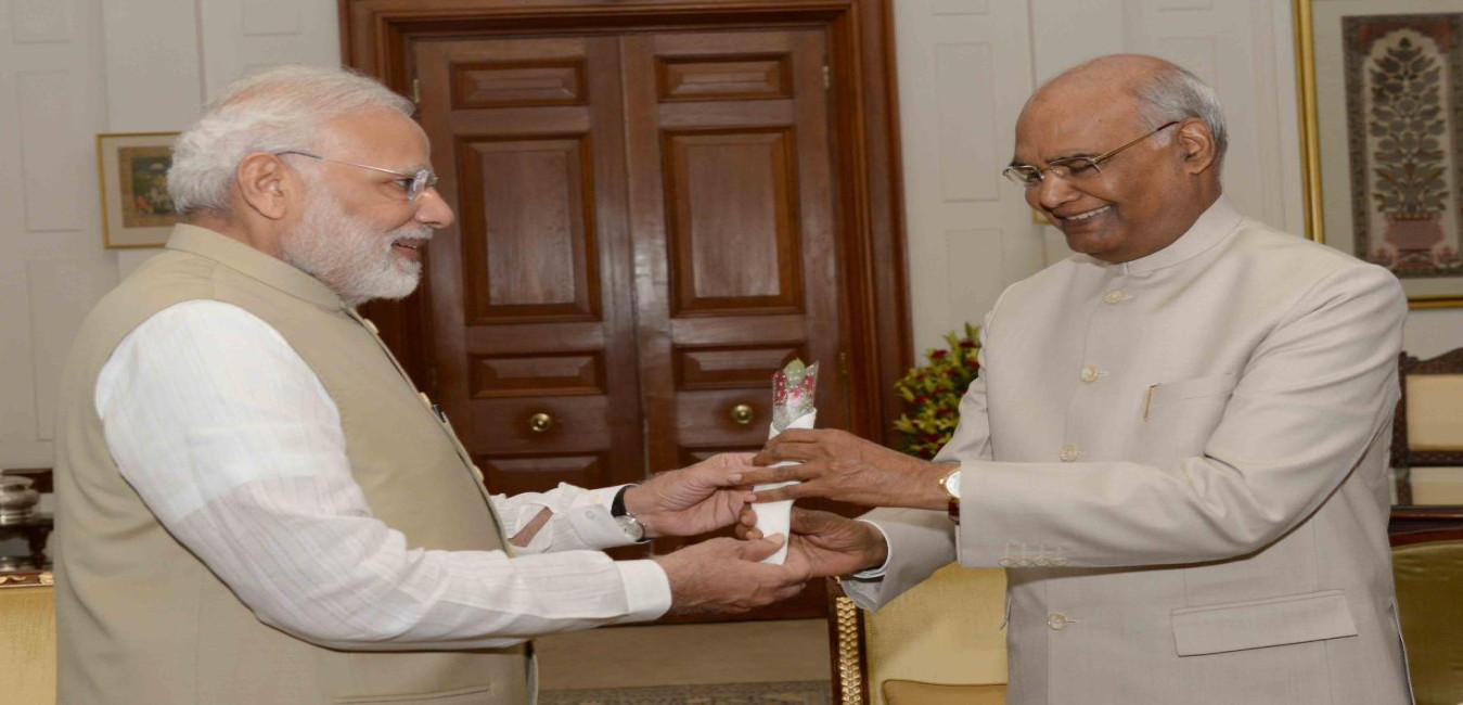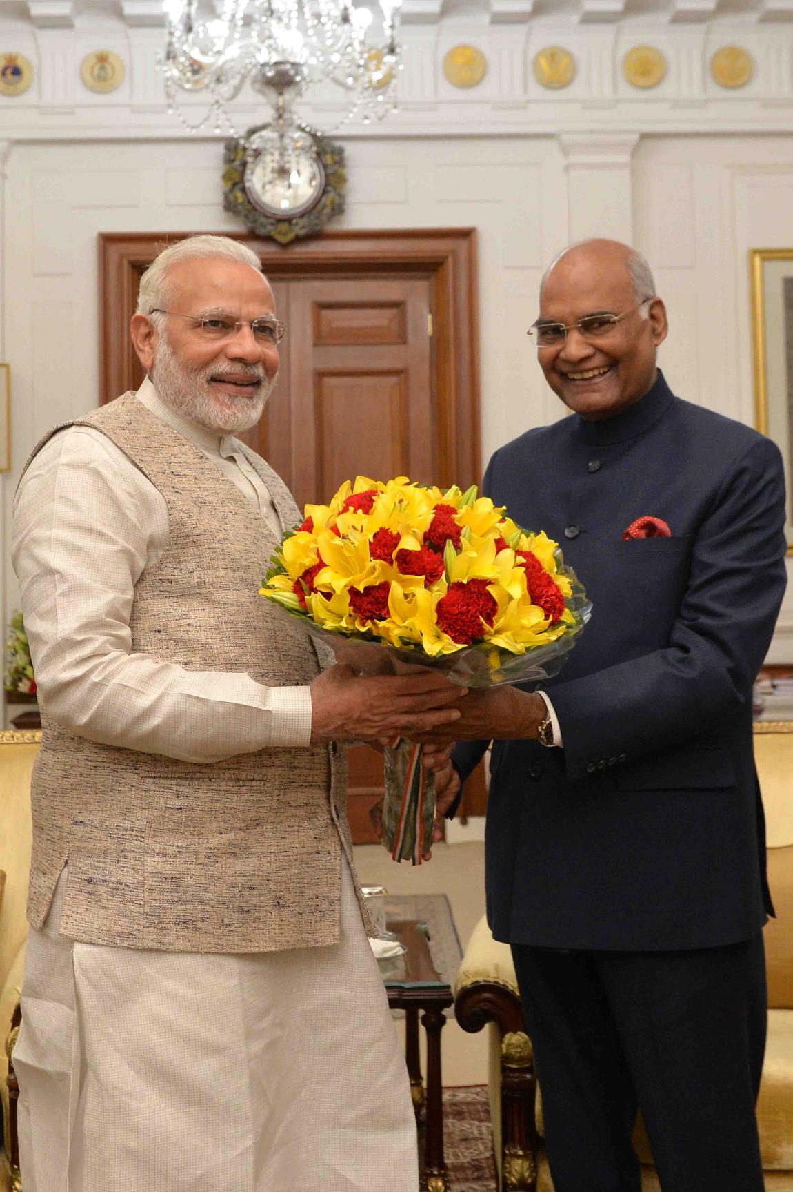The Prime Minister of India, Shri Narendra Modi calling on the President of India, Shri Ram Nath Kovind, at Rashtrapati Bhavan on June 11, 2018.
