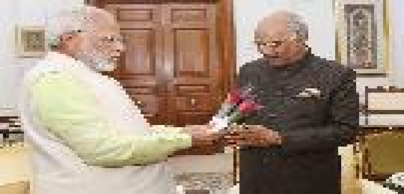 The Prime Minister of India, Shri Narendra Modi greetings the President of India, Shri Ram Nath Kovind on the occasion of New Year, at Rashtrapati Bhavan on January 01, 2018.