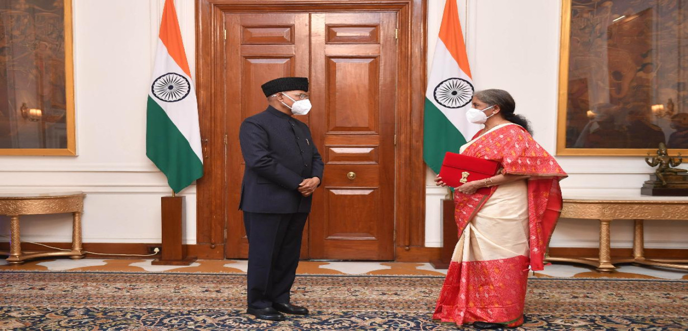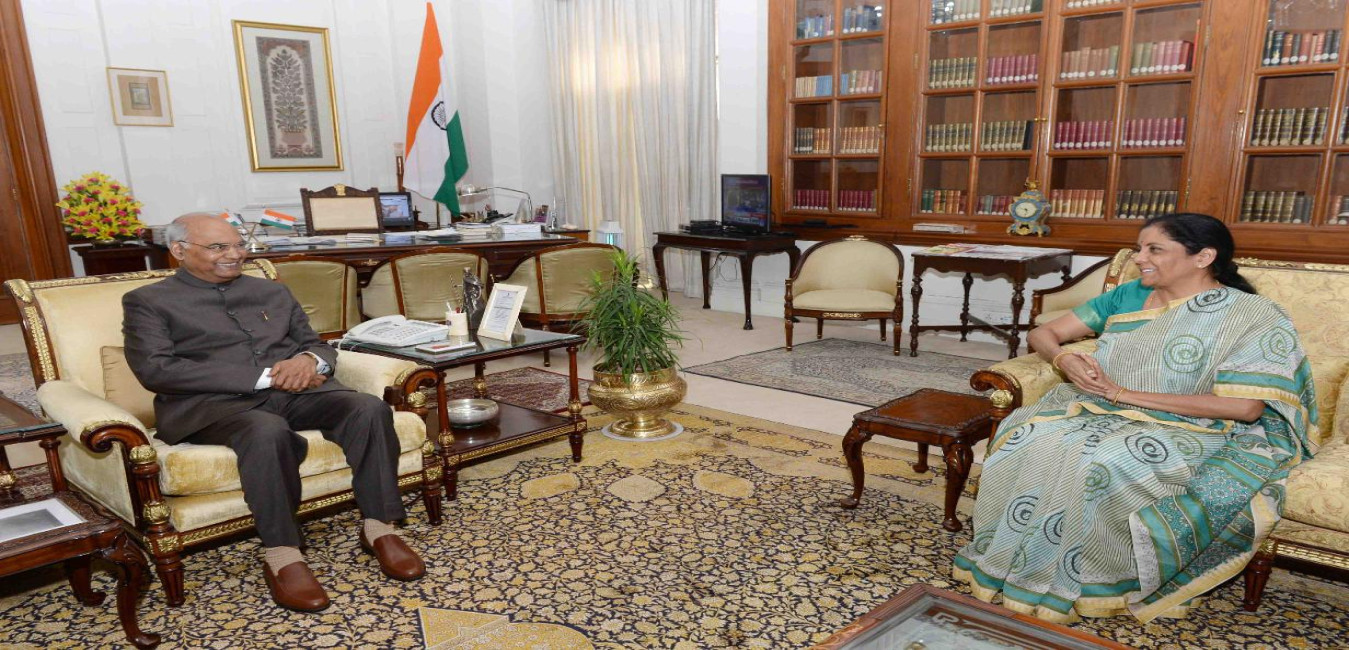 The Minister of Finance and Corporate Affairs, Smt. Nirmala Sitharaman meeting with the President of India, Shri Ram Nath Kovind, at Rashtrapati Bhavan on June 11, 2019.