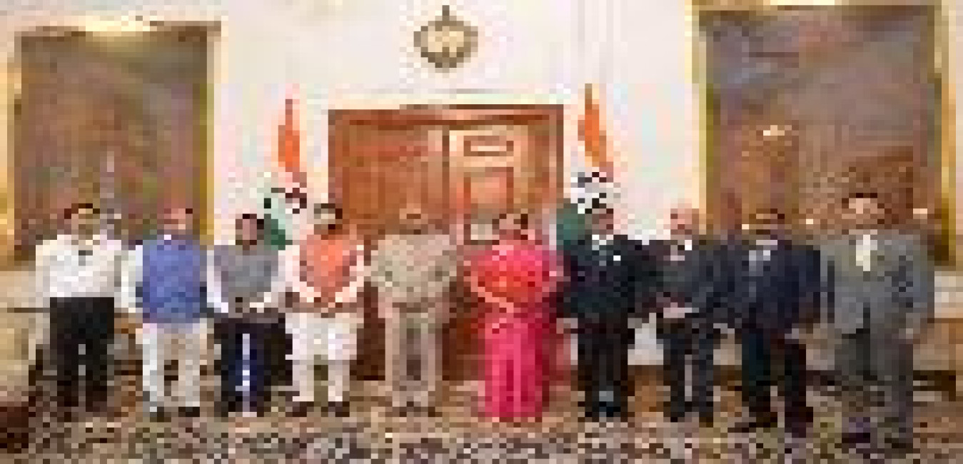 The Minister of Finance, Smt. Nirmala Sitharaman along with the Ministers of State for Finance, Dr. Bhagwat Kishanrao Karad, Shri Pankaj Chaudhary and senior officials of the Ministry of Finance called on the President of India, Shri Ram Nath Kovind before presenting the Union Budget 2022-23, at Rashtrapati Bhavan on February 01, 2022.