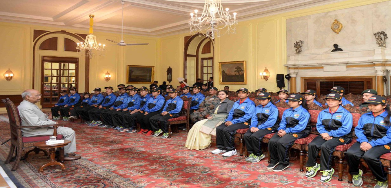 The President of India, Shri Ram Nath Kovind meeting with the children from Dibang Valley of Arunachal Pradesh, attending National Integration Tour, organised by the 117 Mountain Bridage, at Rashtrapati Bhavan on December 28, 2017.