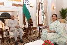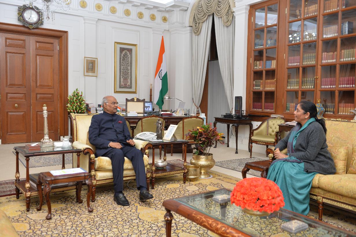 The Minister of Defence, Smt. Nirmala Sitharaman calling on the President of India, Shri Ram Nath Kovind, at Rashtrapati Bhavan on December 27, 2017.
