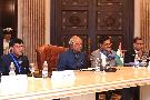 The President of India, Shri Ram Nath Kovind along with the President of the Republic of Equatorial Guinea, H.E. Mr. Obiang Nguema Mbasogo participating the delegation level talks, at Presidential Palace, in the Republic of Equatorial Guinea on April 08, 2018.