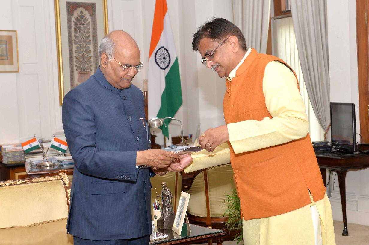 Shri Om Prakash Sharma, MLA, Delhi alongwith Shri Rajat Kumar meeting with the President of India, Shri Ram Nath Kovind, at Rashtrapati Bhavan on January 15, 2019.