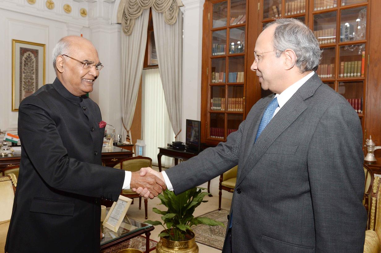 The Ambassador of India to the Russian Federation, Shri Pankaj Saran meeting with the President of India, Shri Ram Nath Kovind, at Rashtrapati Bhavan on December 12, 2017.