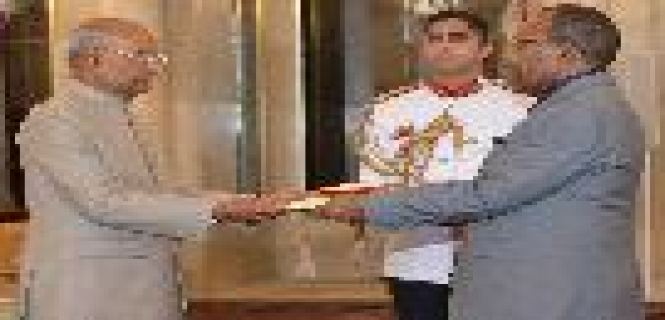 The High Commissioner-designate of Papua New Guinea, H.E. Mr. Paulias Korni presenting his credentials to the President of India, Shri Ram Nath Kovind, at Rashtrapati Bhavan on May 20, 2019.