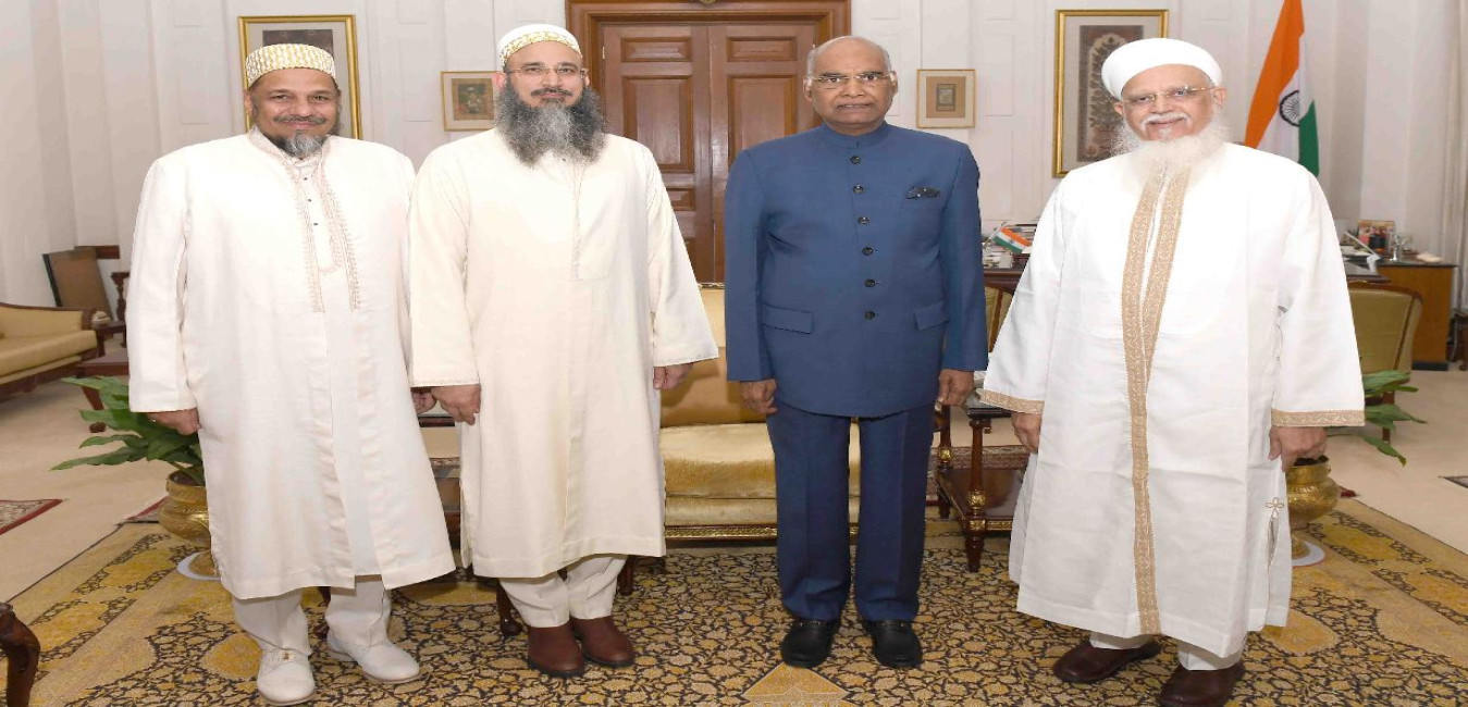 His Eminence Prince Dr. Q. Ezzuddin (brother of HH Dr. Mufddal Saifuddin, Head of World wide Dawoodi Bohra Community) with others meeting with the President of India, Shri Ram Nath Kovind, at Rashtrapati Bhavan on October 14, 2017.
