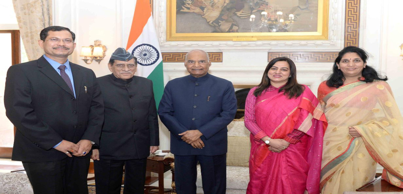 Air Marshal (Retd.) R.C. Bajpai, New Delhi with others meeting with the President of India, Shri Ram Nath Kovind, at Rashtrapati Bhavan on July 23, 2019.