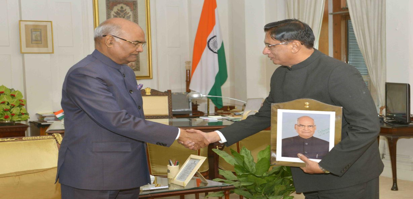 The High-Commissioner of India-designate to Cyprus, Shri R.K. Raghavan meeting with the President of India, Shri Ram Nath Kovind, at Rashtrapati Bhavan on October 10, 2017.