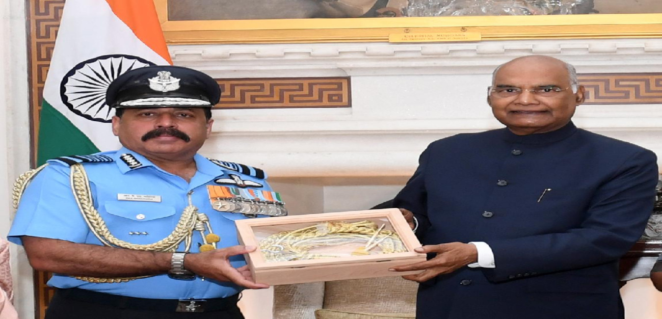The Chief of the Air Staff, Air Chief Marshal R.K.S. Bhadauria calling on the President of India, Shri Ram Nath Kovind, at Rashtrapati Bhavan on September 22, 2021.