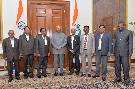 Shri Radheshyam Koli, Founder, Bhagwan Budhh Shiksha & Samaj Unnatiya Sanstha, Rajasthan along with a delegation meeting with the President of India, Shri Ram Nath Kovind, at Rashtrapati Bhavan on November 07, 2019.