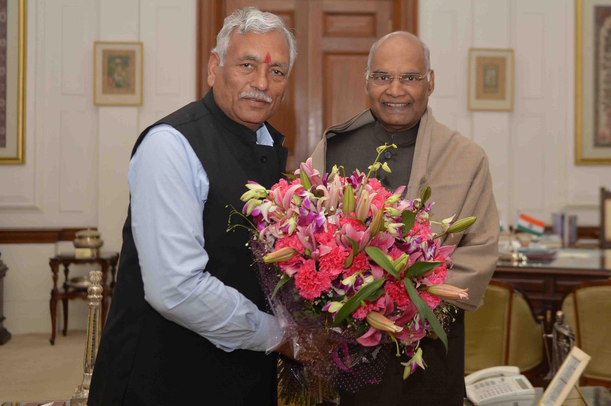 The Speaker, Delhi Legislative Assembly, Shri Ram Niwas Goel calling on the President of India, Shri Ram Nath Kovind, at Rashtrapati Bhavan on January 31, 2018.