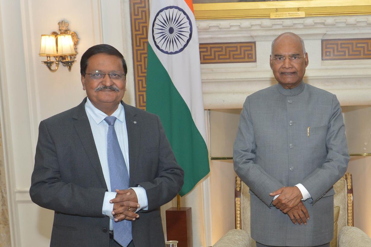 Shri Justice S.J. Mukhopadhaya, Chairperson National Company Law Appellate Tribunal meeting with the President of India, Shri Ram Nath Kovind, at Rashtrapati Bhavan on March 04, 2020.