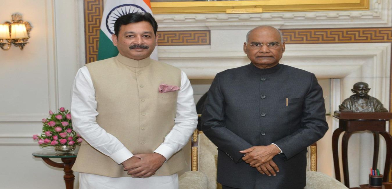 Smt. & Shri Sambhaji Chhatrapati, MP (RS) meeting with the President of India, Shri Ram Nath Kovind, at Rashtrapati Bhavan on November 14, 2017.