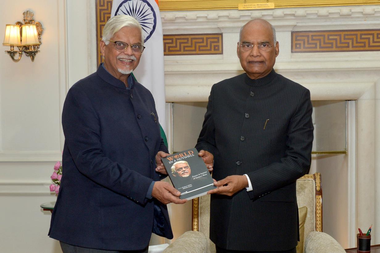 Shri Sanjay Baru, Press Secretary to Ex-Prime Minister of India meeting with the President of India, Shri Ram Nath Kovind, at Rashtrapati Bhavan on March 13, 2020.