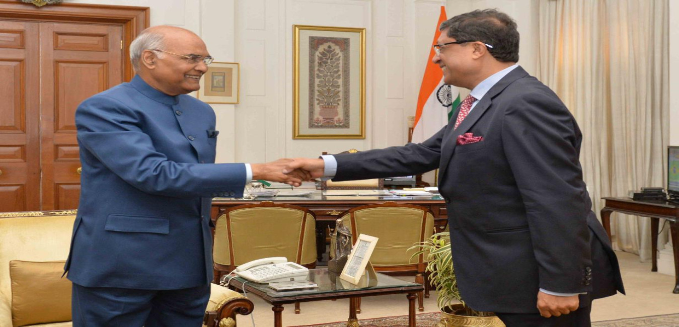 The Ambassador-designate of India to Turkey, Shri Sanjay Bhattacharyya calling on the President of India, Shri Ram Nath Kovind, at Rashtrapati Bhavan on June 06, 2018.
