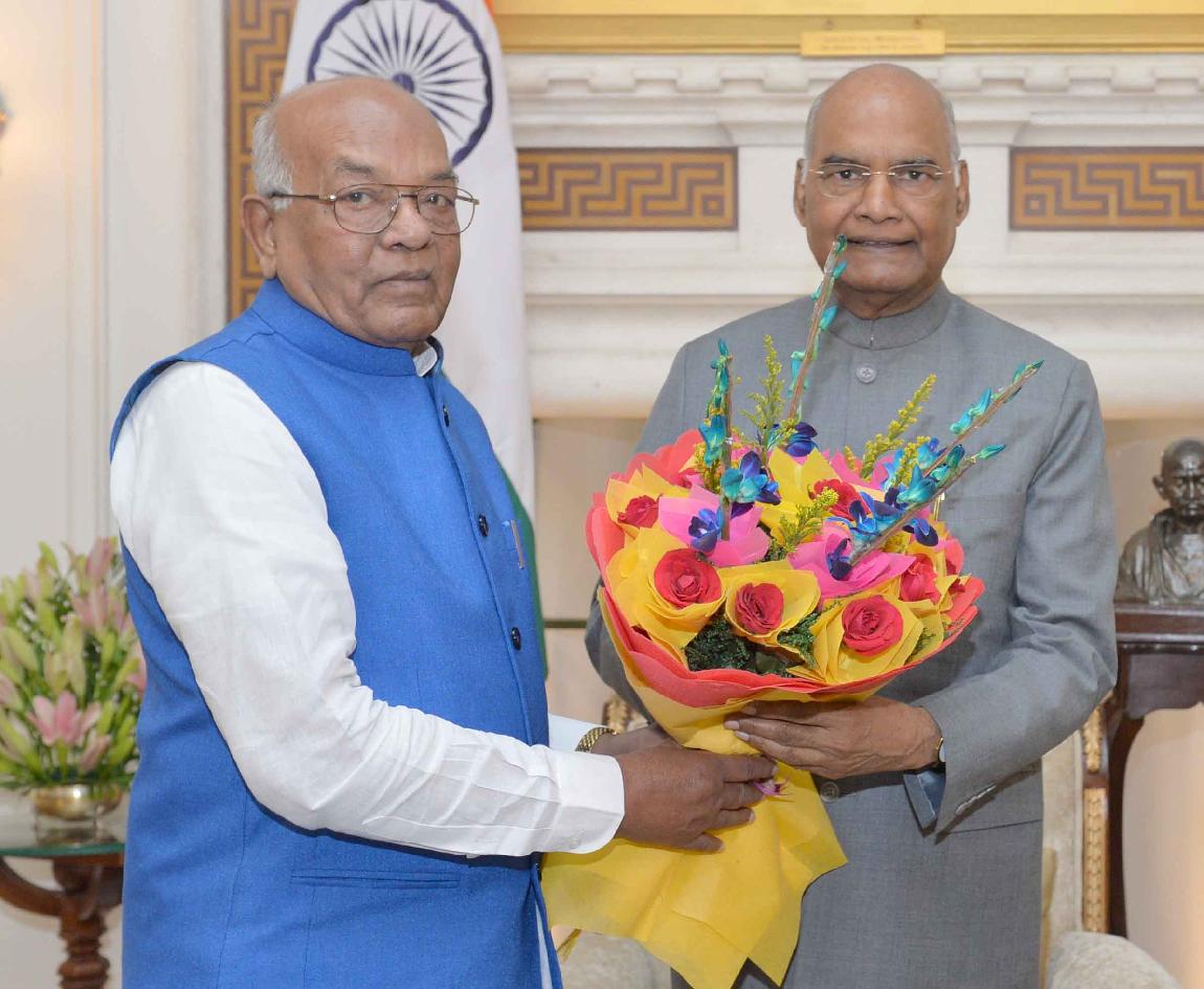 The Governor of Haryana, Shri Satyadeo Narayan Arya meeting with the President of India, Shri Ram Nath Kovind, at Rashtrapati Bhavan on November 07, 2019.