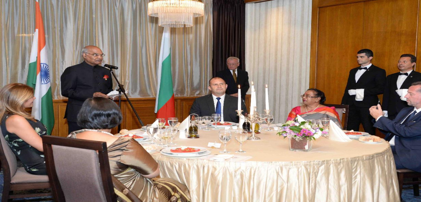 The President of India, Shri Ram Nath Kovind attending the Banquet, hosted in his honour by the President of Bulgaria, H.E. Mr. Rumen Radev, at Boyana Residence, Sofia, in Bulgaria on September 05, 2018.