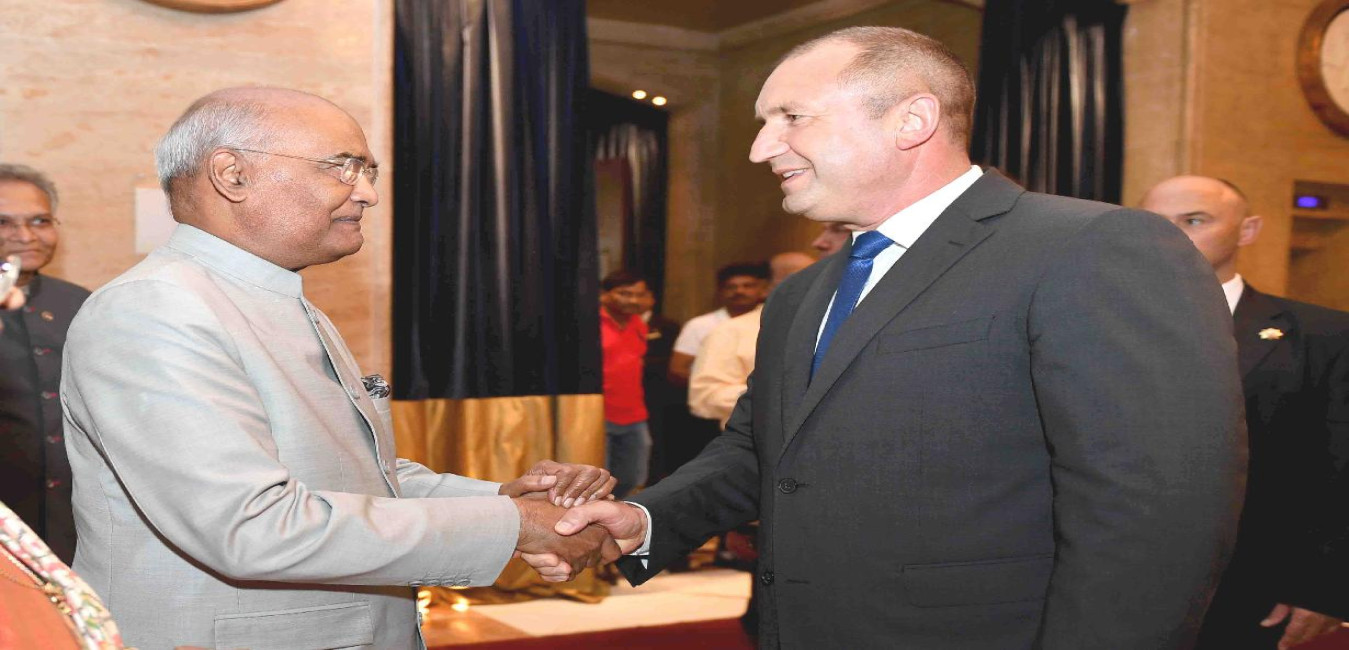 The President of India, Shri Ram Nath Kovind meeting with the President of Bulgaria, H.E. Mr. Rumen Radev, at the Administration of the President Building, in Sofia, Bulgaria on September 05, 2018.