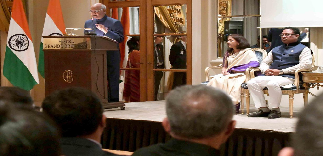 The President of India, Shri Ram Nath Kovind addressing at the Indian Community Reception hosted by the Ambassador of India to Greece, Ms. Samma Jain, at Athens, in Greece on June 17, 2018.