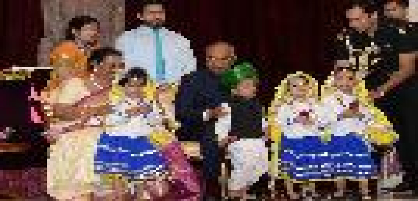 Smt. Kamla Devi, Shri Duni Chand and Shri Kamaljeet Katnaur meeting with the President of India, Shri Ram Nath Kovind and the First Lady of India, Smt. Savita Kovind, at Rashtrapati Bhavan on September 09, 2017.