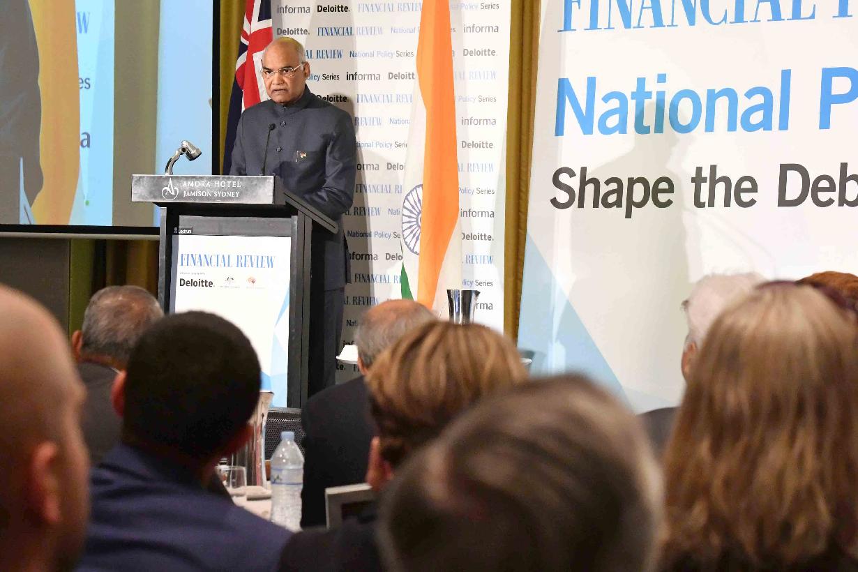 The President of India, Shri Ram Nath Kovind addressing the Australian Financial Review India Business Summit, in Sydney on November 22, 2018.