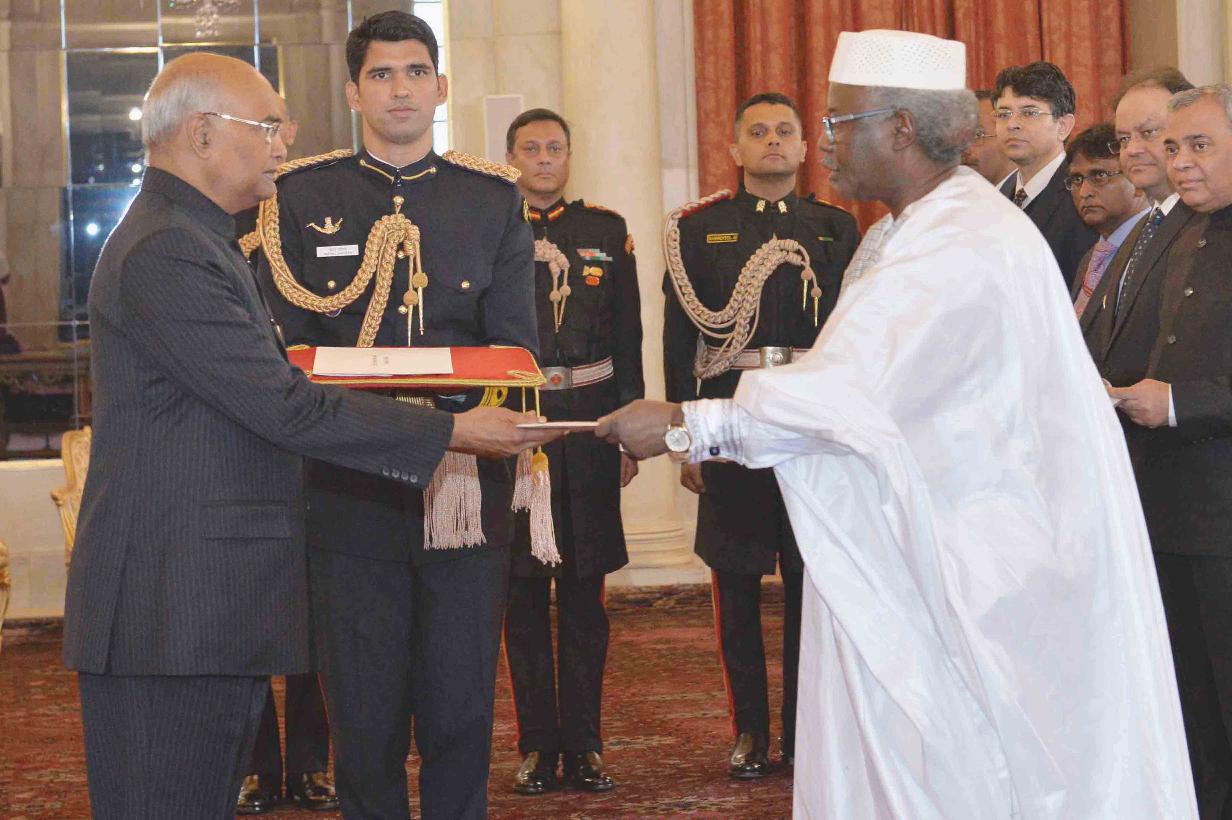 The Ambassador-designate of the Republic of Mali, H.E. Mr. Sekou Kasse presenting his credentials to the President of India, Shri Ram Nath Kovind, at Rashtrapati Bhavan on January 10, 2019.