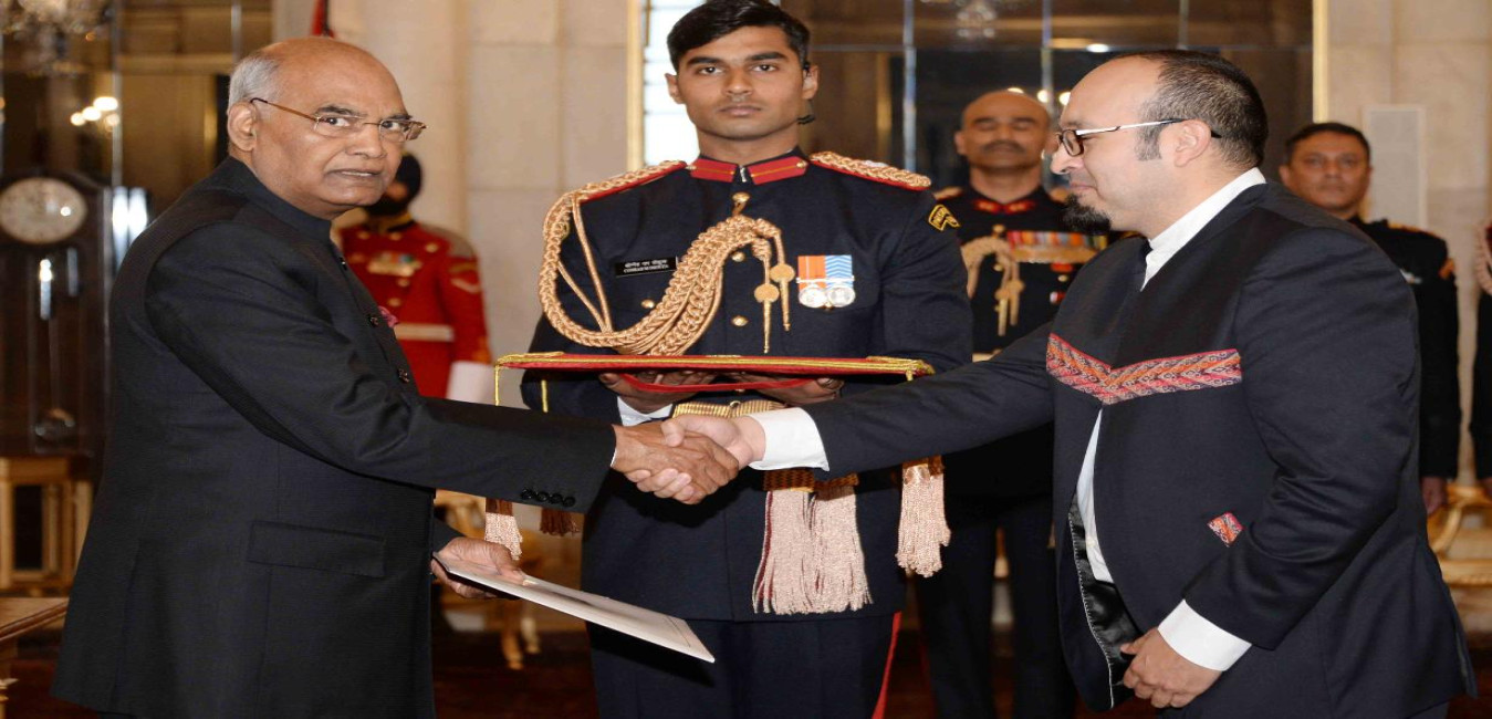 The Ambassador-designate of the Plurinational State of Bolivia, H.E. Mr. Sergio Dario Arispe Barrientos presenting his credentials to the President of India, Shri Ram Nath Kovind, at Rashtrapati Bhavan on February 20, 2018.