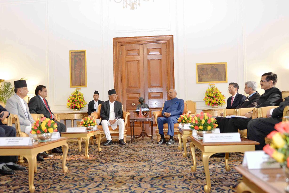 The Prime Minister of Nepal, Rt. Hon'ble Mr. Sher Bahadur Deuba calling on the President of India, Shri Ram Nath Kovind, at Rashtrapati Bhavan on August 24, 2017.