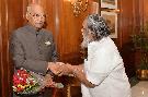 Shri Shibu Soren, MP (LS) & President, Jharkhand Mukti Morcha along with a delegation of MPs, MLAs and leaders of the Jharkhand Mukti Morcha meeting with the President of India, Shri Ram Nath Kovind, at Rashtrapati Bhavan on April 06, 2018.