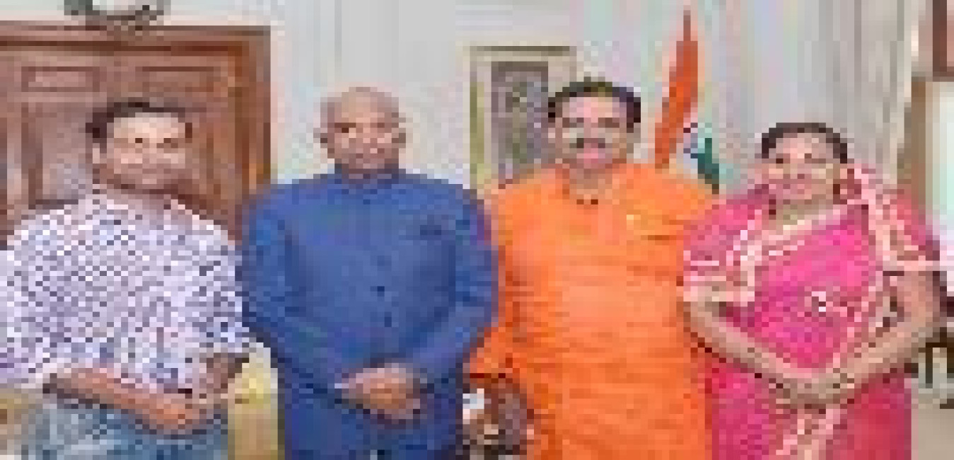 Smt. & Shri Shyam Mohan Dubey, Pradesh Adhyaksh, Uttar Pradesh Yuva Udyog Vyapar Mandal, Kanpur Dehat meeting with the President of India, Shri Ram Nath Kovind, at Rashtrapati Bhavan on October 14, 2017.