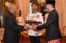 The Ambassador-designate of Indonesia, His Excellency Mr. Sidharto Reza Suryodipuro presenting his credentials to the President of India, Shri Ram Nath Kovind, at Rashtrapati Bhavan on August 23, 2017.