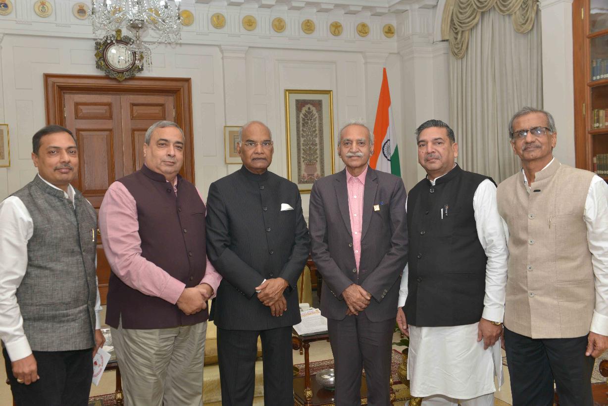Shri Sitaram Pareek, National President Bharat Vikas Parishad (RSS Wing) with others meeting with the President of India, Shri Ram Nath Kovind, at Rashtrapati Bhavan on November 14, 2017.