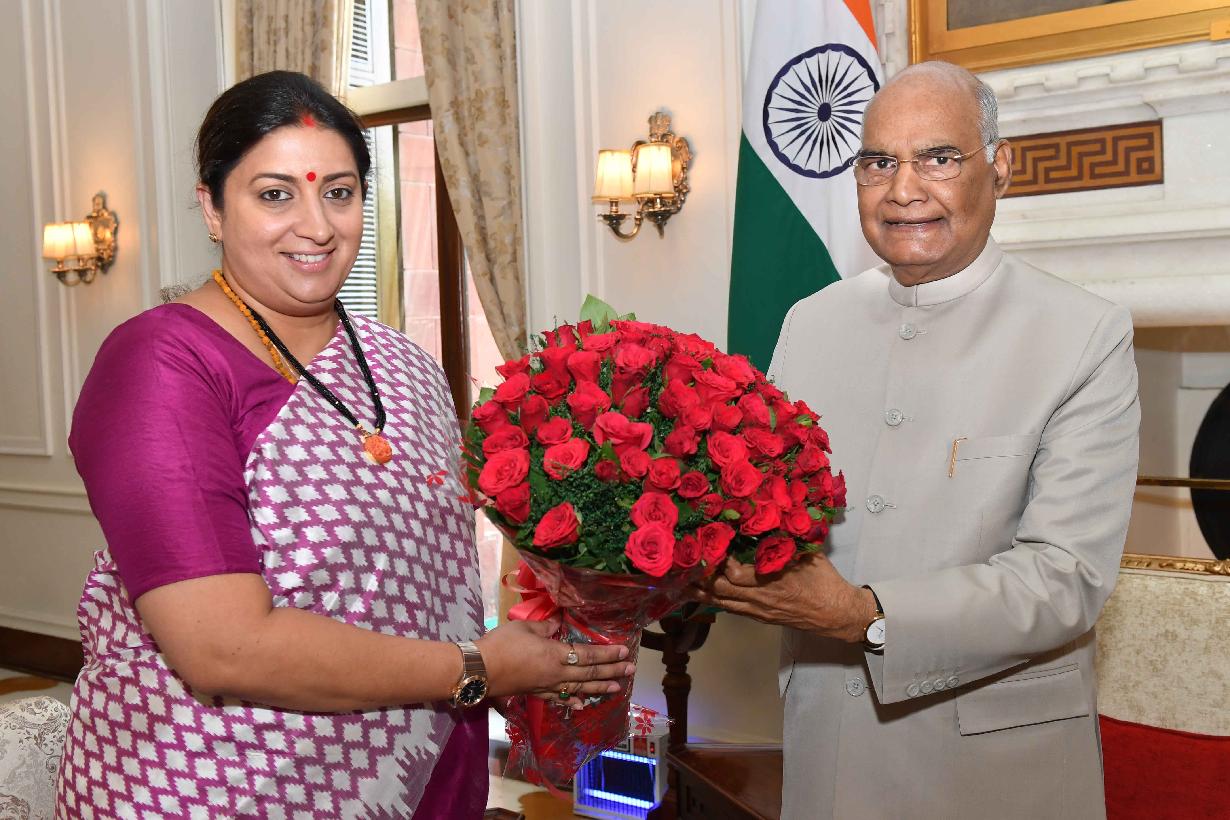 The Minister of Women & Child Development and Textiles, Smt. Smriti Zubin Irani meeting with the President of India, Shri Ram Nath Kovind, at Rashtrapati Bhavan on June 06, 2019.